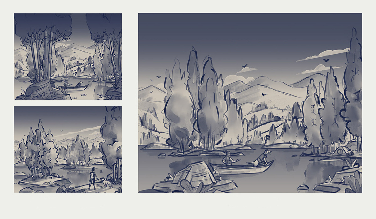 今天帶你一起欣賞“精釀啤酒廠插圖的世界“,用插圖和繪制的草圖訴說了一個啤酒廠的故事。湖泊小船、落日余暉、連綿起伏的丘陵、山脈、樹木和天空渾然一體,創(chuàng)造了一個漂亮的生活環(huán)境, 藍色的天空帶來溫暖的夏季感覺, 徒步旅行者穿梭在樹林中,冒險精神帶給自己更多的勇氣向前邁進,找尋回家的路。空閑的時候朋友們聚集在夜晚堆起的火坑周圍,喝著啤酒,暢想著接下來的生活、夢想,在火爐旁享受夜晚安靜的時刻,在燈光的照耀下開懷大笑。